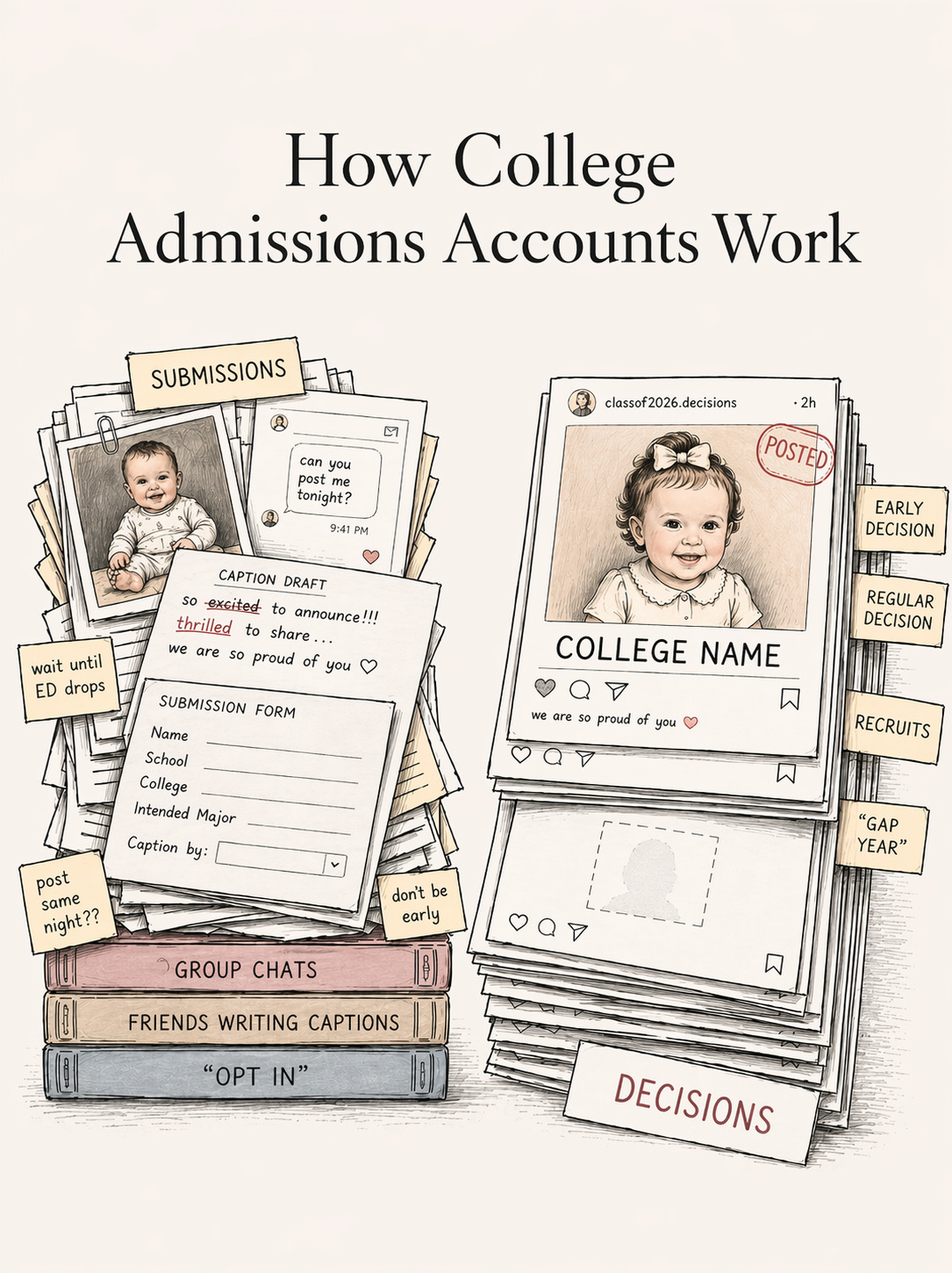 Today, please enjoy my first ever killed piece in my 17-year journalism career. I was commissioned for this piece about college admissions accounts (the non-sanctioned social media accounts that announce where high school students are going to college), because of my widespread knowledge of the private school ecosystem on the Upper East Side, but the editor felt it didn’t have enough tension after I turned it in. She wanted more “teenage and parental angst and emotion” (her quote, not mine). Unfortunately, I didn’t feel that existed, and I didn’t feel comfortable creating a false narrative. (If there’s one thing you can be sure, I will never make a story out of nothing. I took the kill fee). But I do think there is a fun story here even if it’s not some epic tale of upset. (Go easy on me, it has not had the artful touch of a pro editor and is a little formal and less fun than my normal RPS stories, which basically are just my day-to-day talking voice with you all). Also, I had a few of the kids on the record in the original draft, including the son of a RPS subscriber I have gotten to parasocially know, but I have made everyone anonymous in this version since they signed up to be in a traditional media story, not my newsletter. I try to be as transparent with everone as possible. Call me old-fashioned!